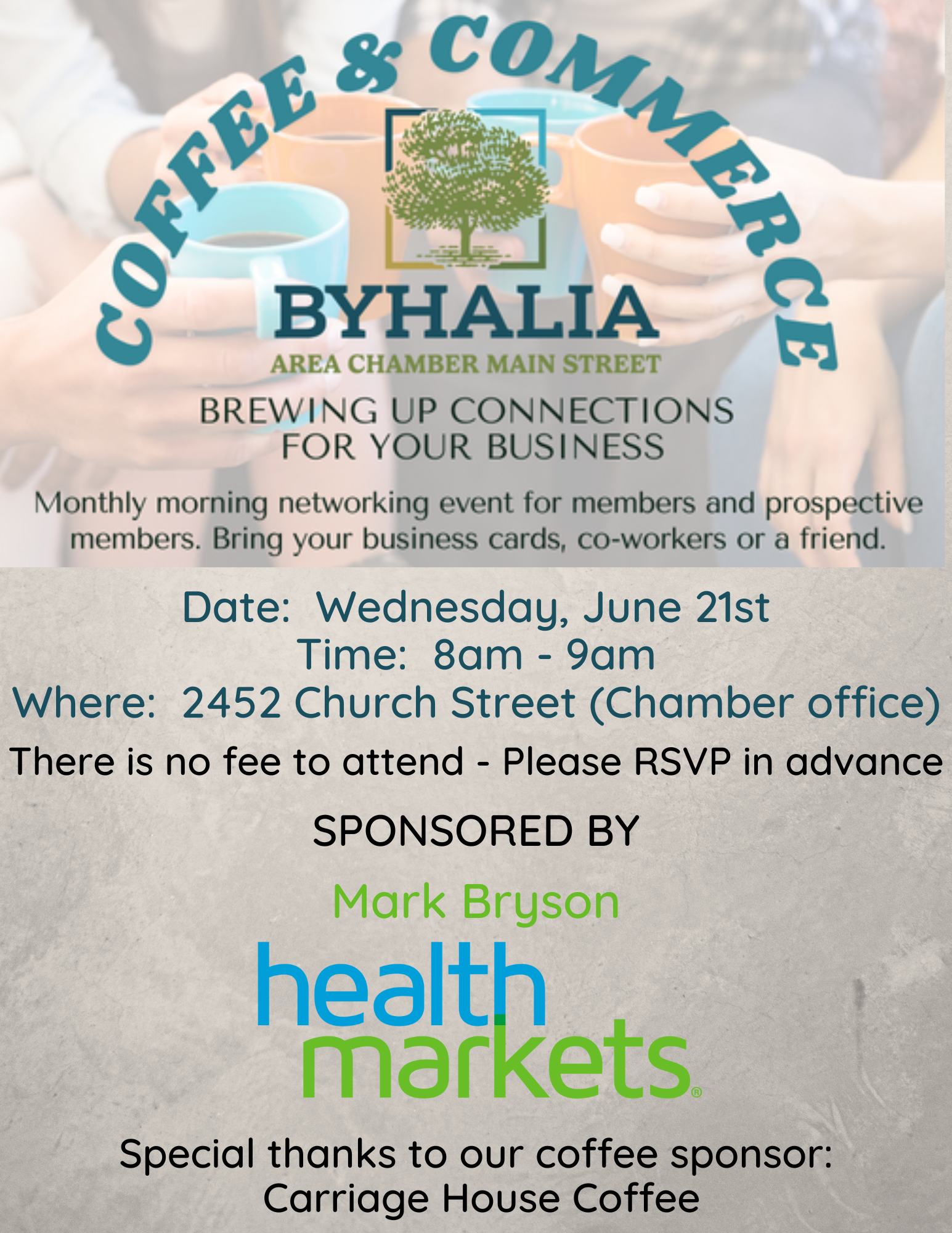 Make plans to attend our monthly Coffee & Commerce where you can mingle with members, business and community leaders. Enjoy coffee, donuts and conversation while making connections to grow your business.